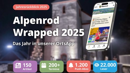 Wenn ich jetzt ihre Neugier geweckt habe, lade ich Sie ein, sich ein wenig auf unserer Seite umzuschauen. Ich bin mir sicher, dass Sie erstaunt sein werden, was es in Alpenrod alles gibt. Wenn Ihnen unser Internetauftritt gefällt, freue ich mich über einen Kommentar. Und wenn nicht? Auch mit Kritik können wir umgehen. Und etwas verbessern kann man immer - im Netz und auch im dörflichen Alltag.