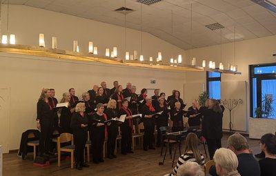 Die Feier begann mit der Begrüßung durch die 1. Vorsitzende Katharina Kühn. Anschließend führte Chorleiterin Edda Sevenich gut gelaunt durch die Geschichte und Geschichten des Chores. Die Schar aus 27 Sängern eröffnete den Reigen mit „Good News“. Das musikalische Spektrum des Chores spannte sich dabei weit: Es reichte von Liedern zum Lobe Gottes wie „The Lord bless you and keep you“ und traditionellen Volksliedern wie dem „Lindenbaum“ bis hin zu kontrastreichen Werken wie dem opernhaften „Giulietta di Verona“ oder dem Elvis-Klassiker „Can’t help falling in love“. Die geschulten Stimmen zeigten eindrücklich, dass sie lange Atembögen und Phrasen führen vermögen.
