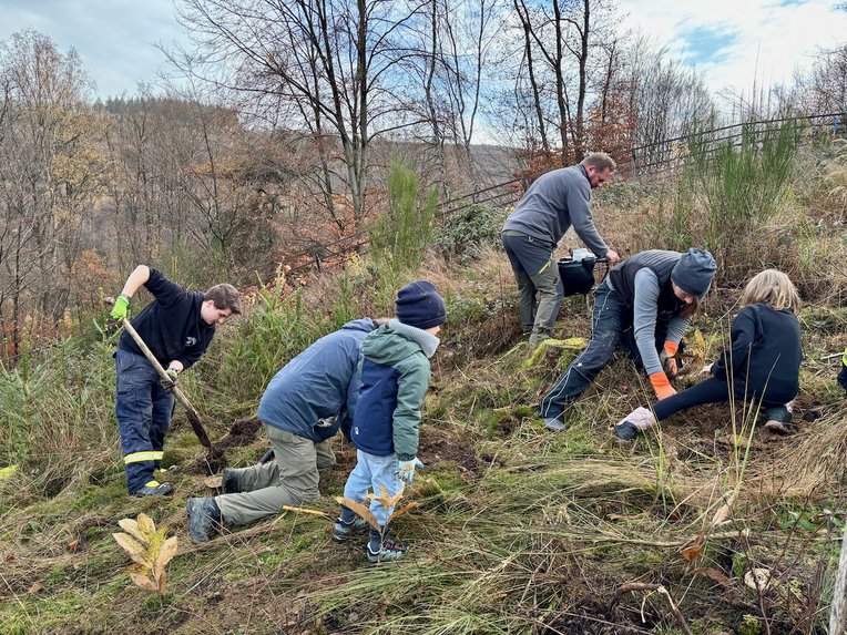 Ein großer Dank gilt wie immer unserer Feuerwehr und der Jugendfeuerwehr, die seit der ersten Pflanzaktion tatkräftig mithelfen. Die Ortsgemeinde unterstützte die Helferinnen und Helfer, indem sie Bohrgeräte und Pflanzwerkzeug bereitstellte, die die Arbeit deutlich erleichterten, sowie Getränke während der Pflanzaktion. Zum Abschluss gab es wie die Jahre zuvor auch einen stärkenden Mittagsimbiss.