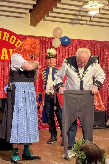 Sportlich und elegant wurde es mit dem Auftritt des Solomariechens aus Nistertal. Ihr ausdrucksstarker Tanz und die akrobatischen Elemente begeisterten die Zuschauer. Direkt darauf zeigten die Frauen aus Alpenrod in ihrem Sketch „Auf dem Bürgermeisteramt“, wie im Wartezimmer des Alpenroder Rathauses quer durchs Dorf getratscht wird – von kleinen Alltagsbeobachtungen bis hin zu den großen Themen des Jahres. Die Solo Synchron Möhnen setzten mit einer weiteren kreativen Tanzshow einen optischen Höhepunkt und bestätigten ihren Ruf als feste Größe im Programm der Humorarena. Neu dabei war die Tanzgruppe „Drei Bier später“, die mit ihrem mitreißenden Auftritt viel Stimmung brachte und sich sofort in die Herzen des Publikums tanzte.