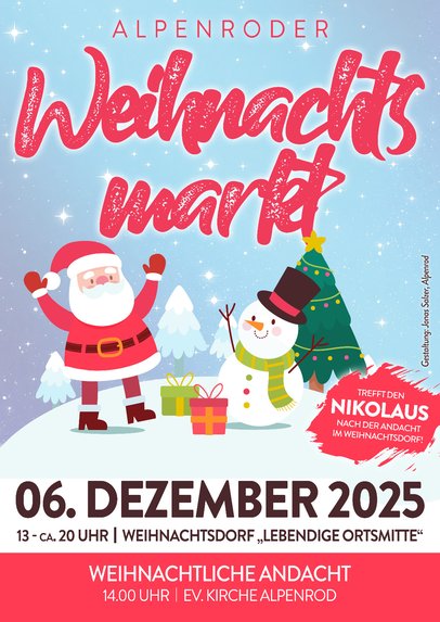 Der Weihnachtsmarkt in Alpenrod hat eine lange Tradition – und auch in diesem Jahr dürfen sich alle Besucherinnen und Besucher auf einen zauberhaften Adventsnachmittag freuen. Am Samstag, 6. Dezember 2025, verwandeln sich der Bereich zwischen der „Lebendigen Ortsmitte“ und dem Kirchplatz erneut in ein festlich dekoriertes Weihnachtsdorf, das von 13.00 bis ca. 20.00 Uhr zum Verweilen einlädt.