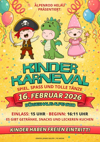 Zum Abschluss des närrischen Treibens richten die Organisatoren bereits den Blick auf den nächsten Höhepunkt: den Kinderkarneval im Bürgerhaus Alpenrod am Rosenmontag, 16. Februar 2026. Ab 15.00 Uhr ist Einlass für kleine und große Narren, Beginn ist um 16.11 Uhr - Kinder haben freien Eintritt. Zusätzlich sorgen zwei Tanzgruppen aus der Nachbargemeinde Enspel, das Männerballett „Granitgranaten“, die Solo Synchron Möhnen und „Drei Apfelsaft später“ mit ihren Auftritten für ein abwechslungsreiches Programm.
