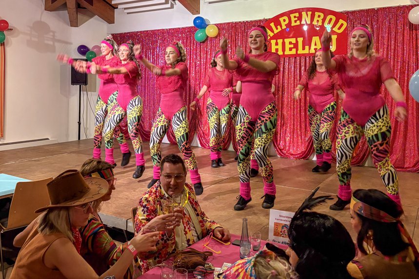 Sportlich und elegant wurde es mit dem Auftritt des Solomariechens aus Nistertal. Ihr ausdrucksstarker Tanz und die akrobatischen Elemente begeisterten die Zuschauer. Direkt darauf zeigten die Frauen aus Alpenrod in ihrem Sketch „Auf dem Bürgermeisteramt“, wie im Wartezimmer des Alpenroder Rathauses quer durchs Dorf getratscht wird – von kleinen Alltagsbeobachtungen bis hin zu den großen Themen des Jahres. Die Solo Synchron Möhnen setzten mit einer weiteren kreativen Tanzshow einen optischen Höhepunkt und bestätigten ihren Ruf als feste Größe im Programm der Humorarena. Neu dabei war die Tanzgruppe „Drei Bier später“, die mit ihrem mitreißenden Auftritt viel Stimmung brachte und sich sofort in die Herzen des Publikums tanzte.